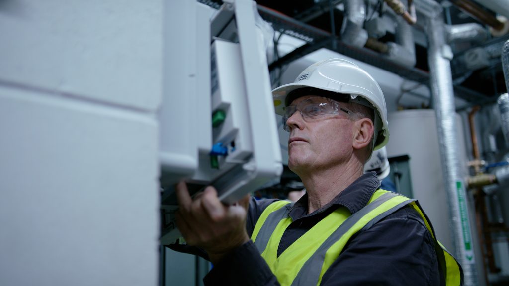 The heat in the pipes then radiates into the rooms through wall mounted radiators and underfloor heating systems.
